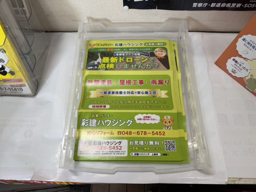 このたび、**上尾市原市郵便局**様のご厚意により、弊社のリフォームチラシを置かせていただいております📮✨